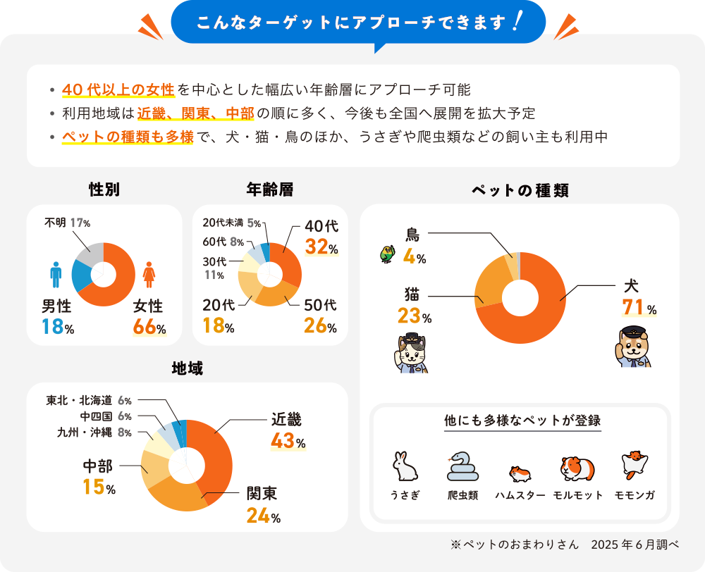エリアごとの広告掲載で、お店の周辺地域のペットオーナーに確実に情報を届けることができます。