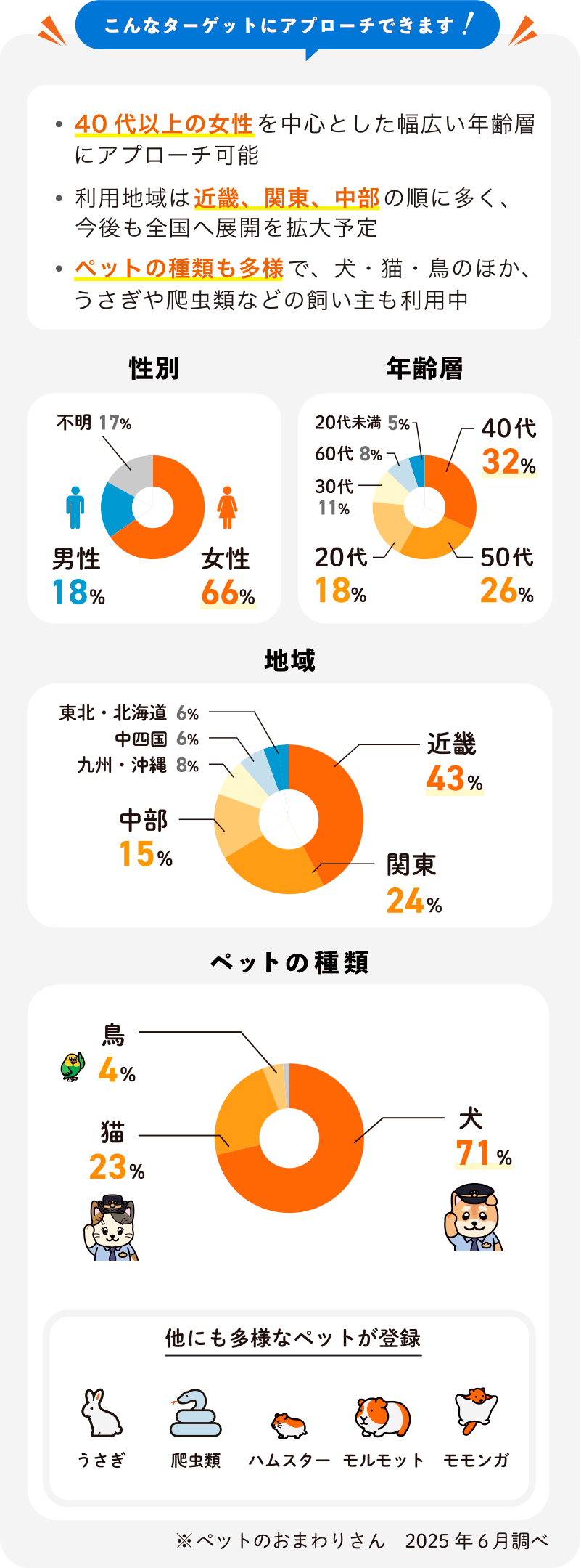 ・ペット関連商品又はペット関連サービスその他当社が利用者にとって有益と判断する提案、広告宣伝等の情報提供のため