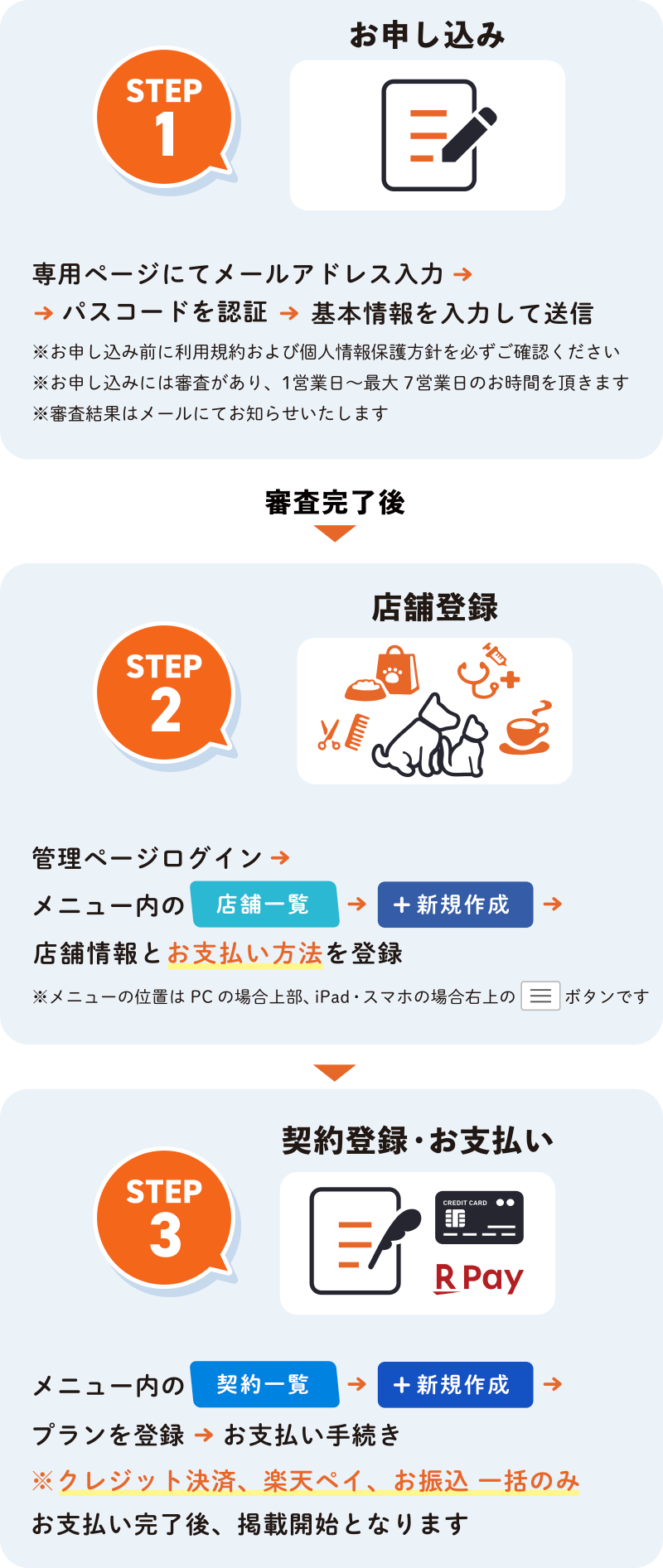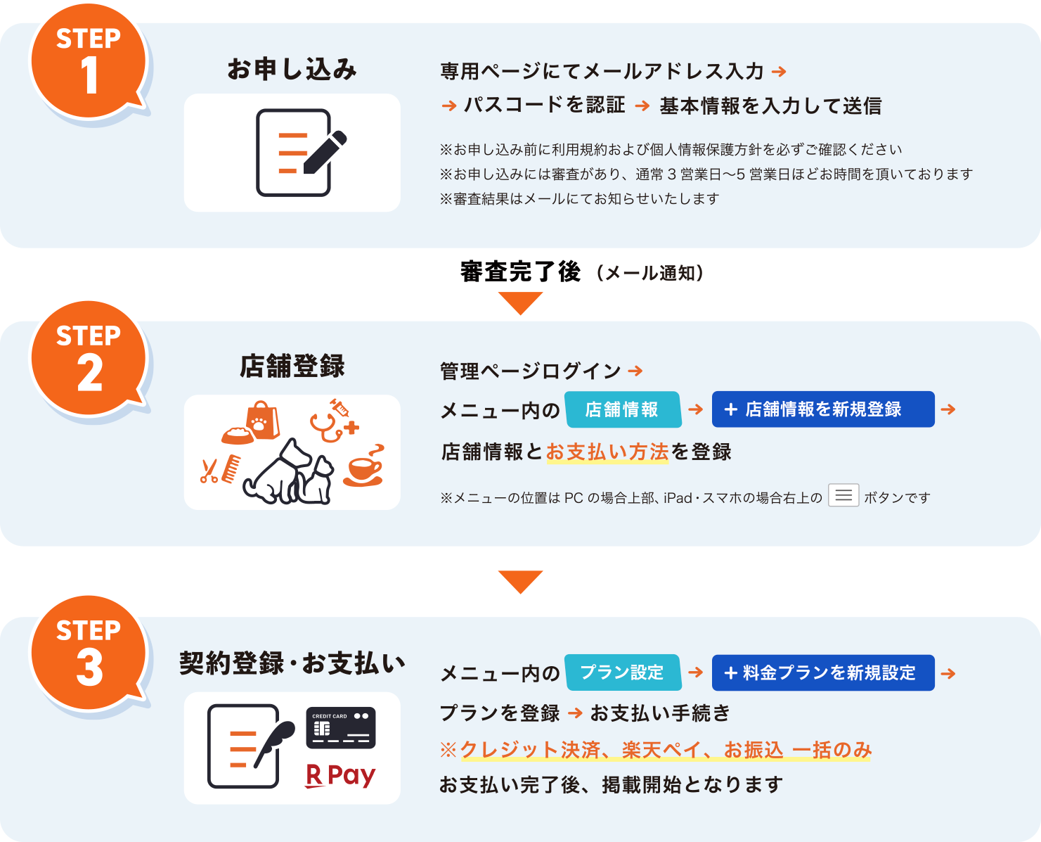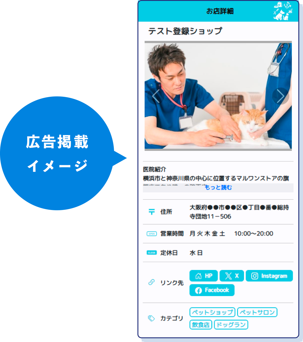 ペットのお店や加験のジャンルを登録できます掲載エリア