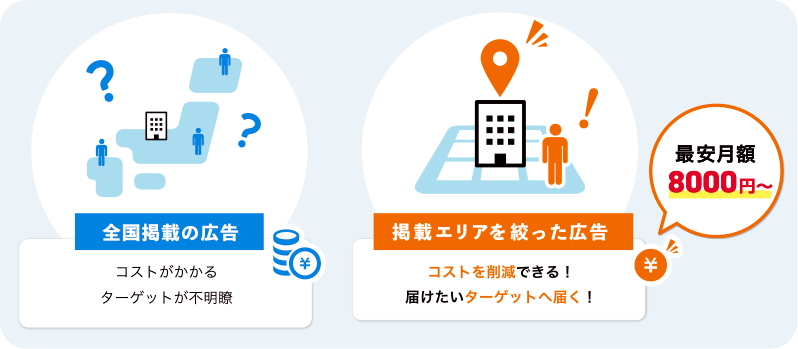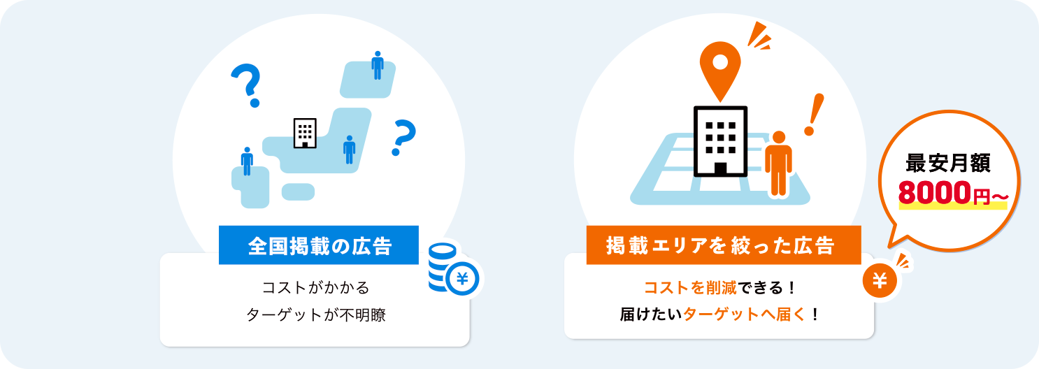 掲載エリアとターゲットを被ることで費用は最小限!効果は最大に!