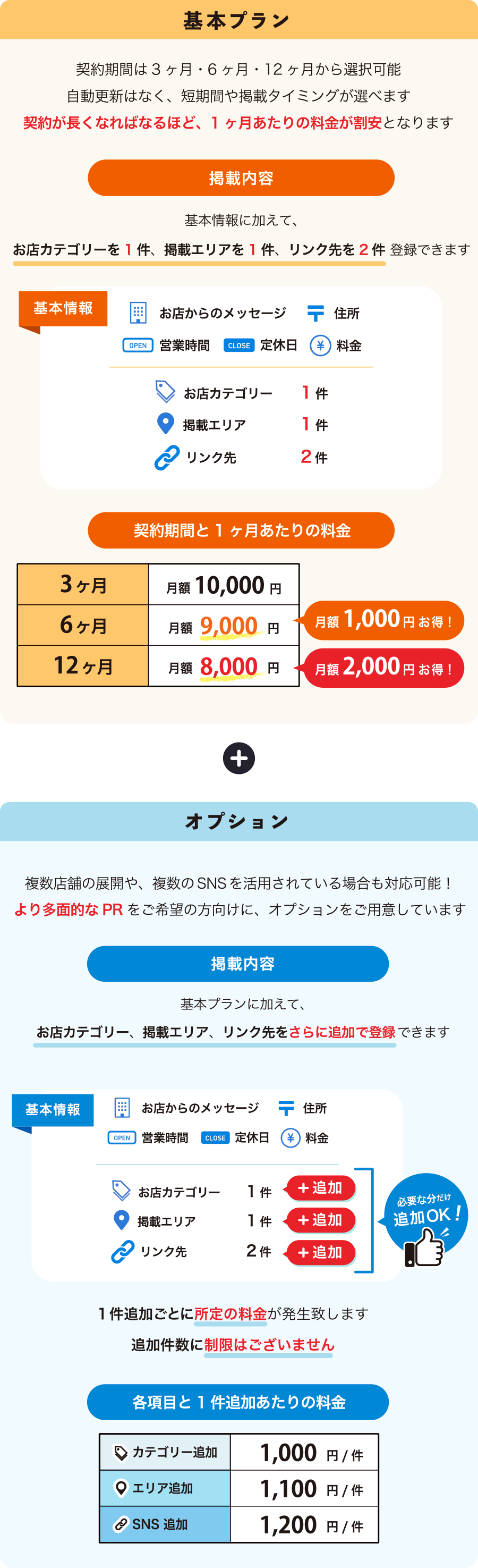 「基本プラン」をベースに、目的に応じてオプションを追加できる仕組みです。