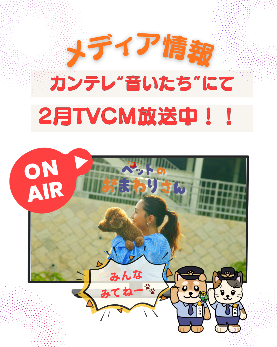 メイクビーは本社が大阪とういう事もあり先ずは、関西の皆様にペットのおまわりさんを知って頂けるよう、この度カンテレ(関西テレビ)にて2月中のCM放映が決定いたしました🎉